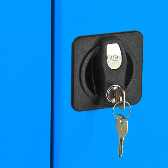 | Farbe | Wahlweise Korpus: Lichtgrau RAL 7035 Türen: Lichtgrau RAL 7035 oder Korpus: Lichtgrau RAL 7035 Türen: Lichtblau RAL 5012 |