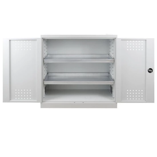 Der Umweltschrank von ADB dient optimal zur Lagerung von giftigen und wassergefährdeten Chemikalien. Durch die robuste aber dennoch elegante Bauweise ist der ADB Umweltschrank ein absolutes Highlight in Ihrem Labor oder Ihrer Werkstatt. Er besitzt ein abschließbares Zylinderschloss, sodass Kinder oder Unbefugte keinen Zugriff darauf haben.