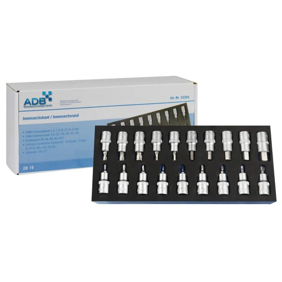 - ADB Innensechskant/Innenseschsrund-Set 1/2′, 19-teilig 22203