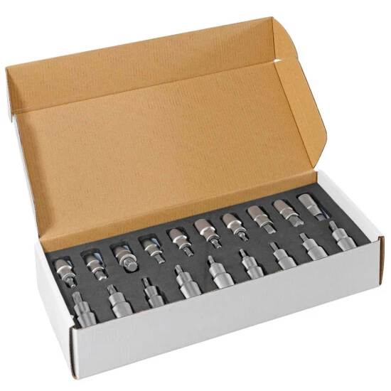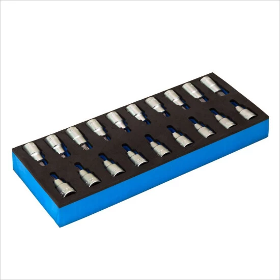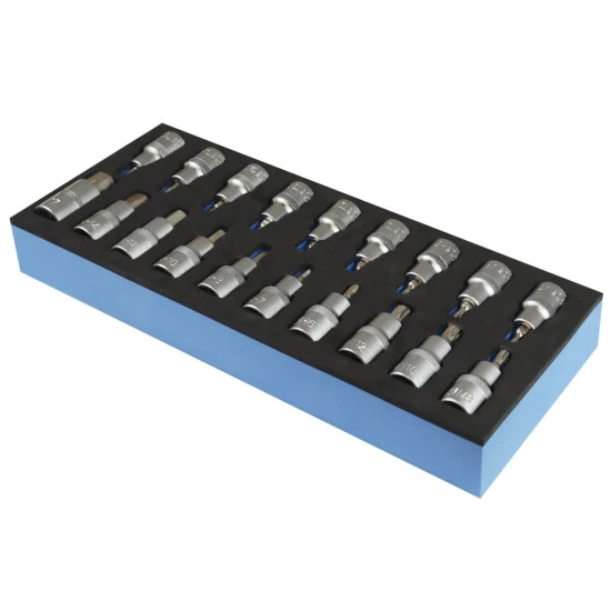 Das Set wird in einer stabilen Schaumstoff-Schubladeneinlage geliefert, die in Schubladen eingelegt werden kann und dort für Übersicht und Ordnung sorgt.