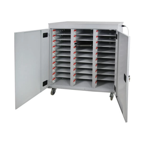 Durch die Anzahl an verschiedenen Fächern, die alle mit Strom durch Schuko-Steckdosen versorgt werden, eignet sich der Laptopwagen perfekt zum Laden mehrerer mobiler Geräte. Dank der Belüftung durch Öffnungen an den Seitenwänden und der Rückwand, bleibt die Temperatur stets im neutralen Bereich. Jeder Wagen verfügt über eine 2m lange Zuleitung und einen Ein- und Ausschalter.