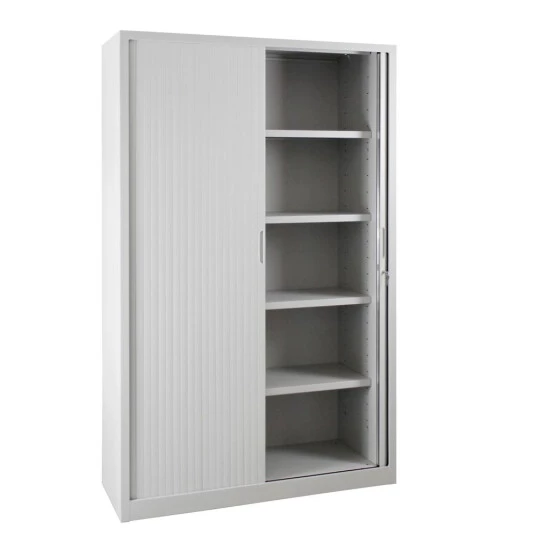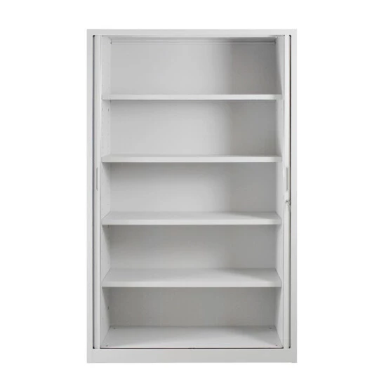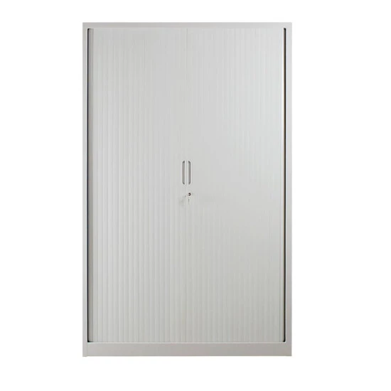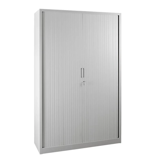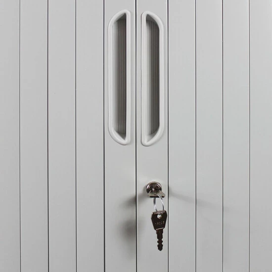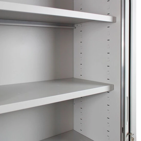 Der Korpus des ADB Rollladenschrankes ist aus stabilem, pulverbeschichtetem Stahlblech gefertigt. Die abschließbaren Rollladen bestehen aus Kunststoff. Der Aktenschrank überzeugt nicht nur durch die leisen und leicht laufenden Türen, sondern auch durch die in der Höhe verstellbaren vier Fachböden.