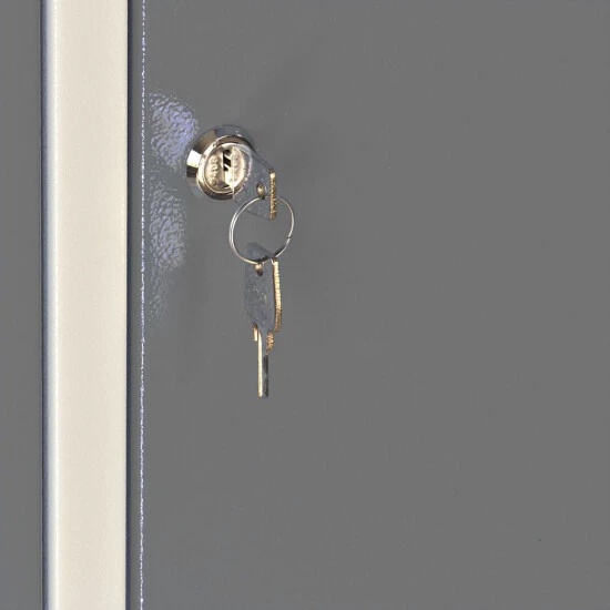 - Farbe Korpus: lichtgrau (RAL 7035), Farbe Türen: lichtgrau (RAL 7035)