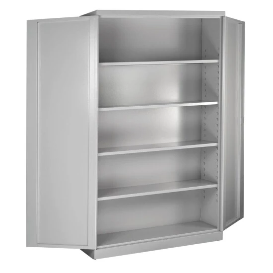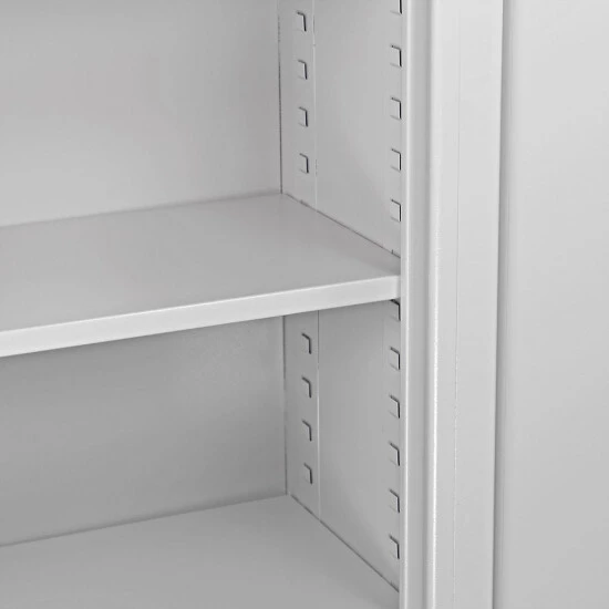 Im Inneren besitzt der Stahlschrank 4 praktisch höhenverstellbare Fachböden.