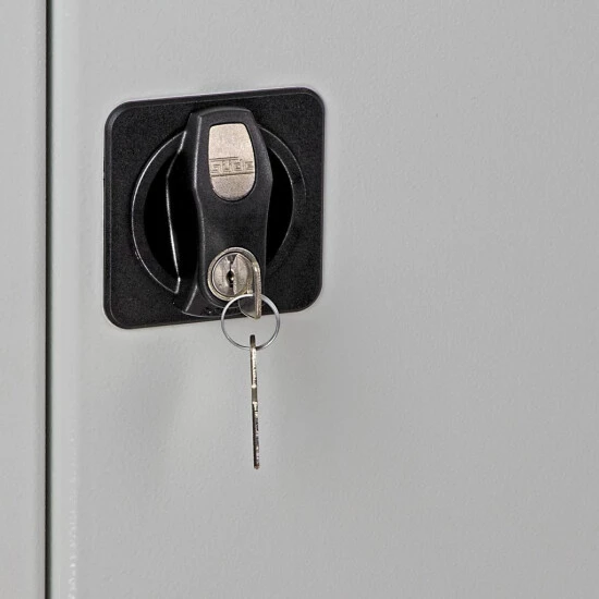 | Farbe | Wahlweise Korpus: Lichtgrau (RAL 7035) Türen: Lichtgrau (RAL 7035) oder Korpus: Anthrazitgrau (RAL 7016) Türen: Feuerrot (RAL 3000) |
