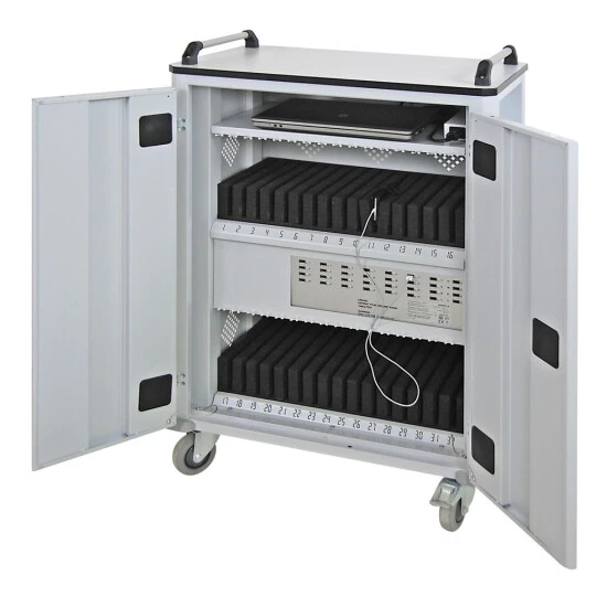 Hochwertiger ADB Tabletwagen mit Stromversorgung – Ideal zum Laden von Laptops, Notebooks, Tablets, Smartphones & Co. Mit diesem Tabletwagen sind die Geräte sicher aufbewahrt und können gleichzeitig geladen werden. Ein MUSS für alle Schulen, Universitäten & alle anderen Bildungs- oder Soziale Einrichtungen.