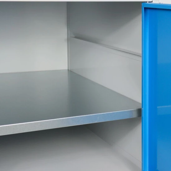 Durch die Fachböden, bietet der Werktisch eine gute Aufbewahrungsmöglichkeit für Ihr Werkzeug.